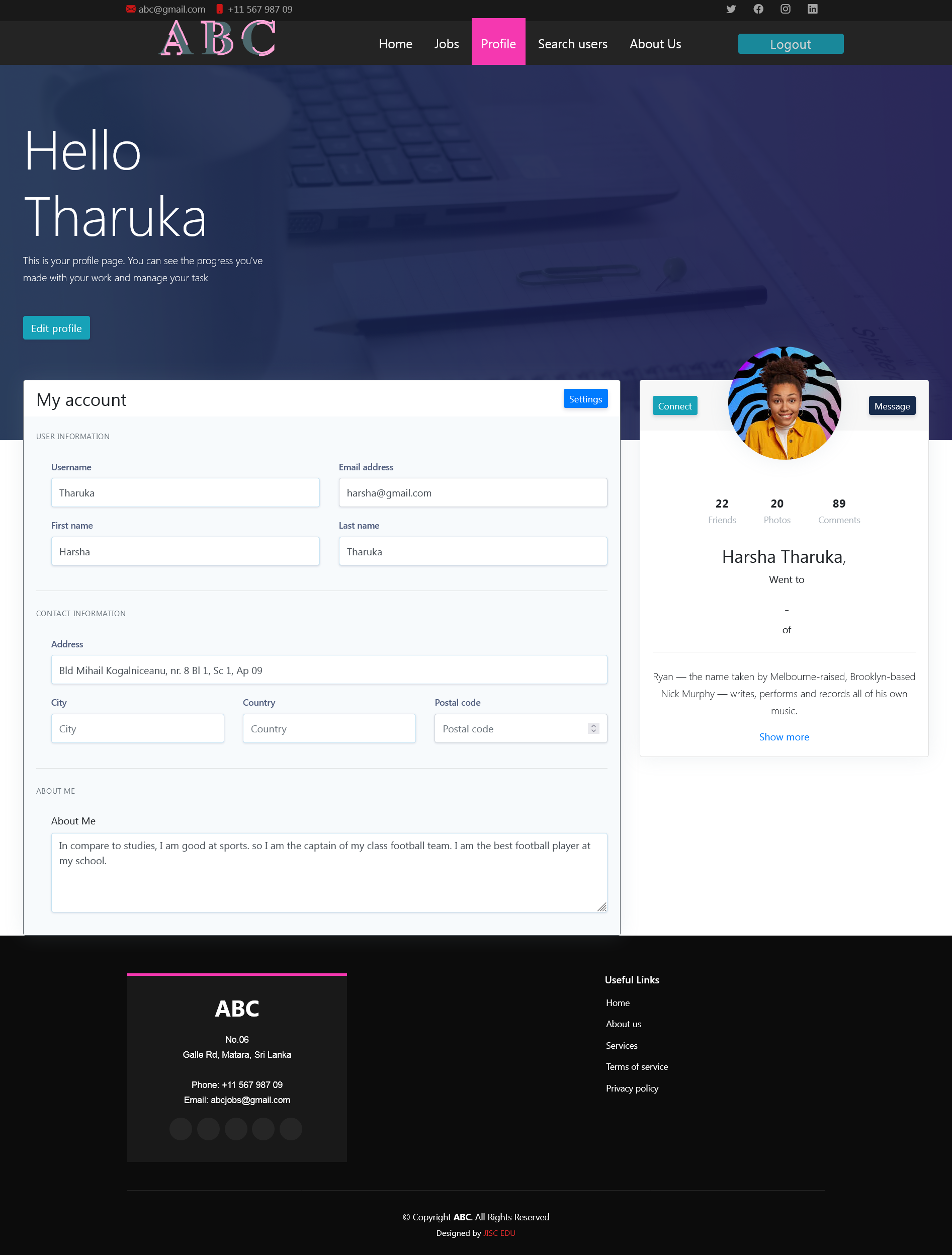 Portal users can search for other user’s profiles using various parameters such as first